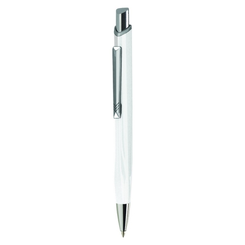 Ручка металлическая ТМ Prestige - Kobi треугольной формы. Алюминиевый прорезиненный корпус, серебристый клип, кнопка, наконечник. Корпус с глянцевым покрытием под керамику. Механизм ручки: нажимной. Стержень легко поменять. Цвет чернил: синий.