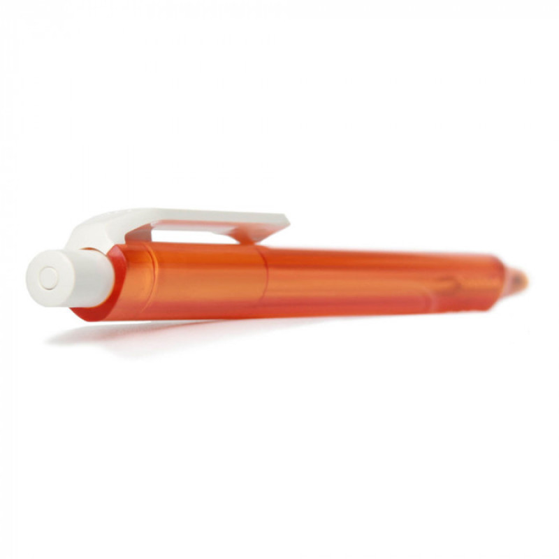 Шариковая ручка высокого качества. Без возможности замены стержня. Пластиковый, трехгранный в сечении корпус. Кнопка и клип из белого непрозрачного пластика.
