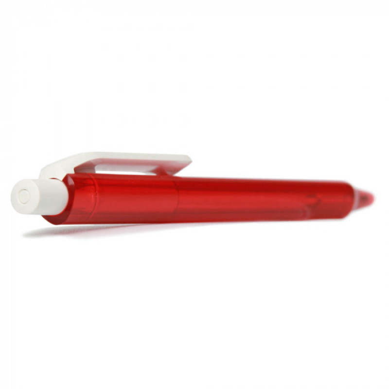 Шариковая ручка высокого качества. Без возможности замены стержня. Пластиковый, трехгранный в сечении корпус. Кнопка и клип из белого непрозрачного пластика.