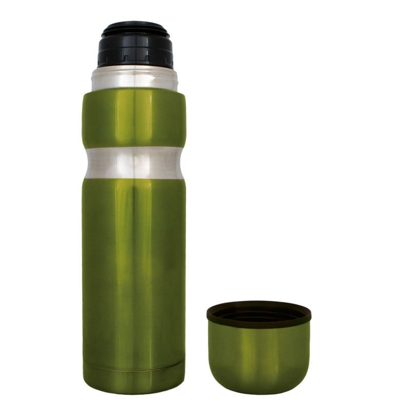 Корпус термоса с двойными стенками, изготовленный из нержавеющей стали. Крышка внутри пластиковая, можно использовать в качестве чашки. Двойная автоматическая пробка убережет от протекания жидкости и обеспечивает удобное использование термоса.