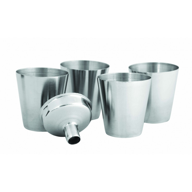 Набор стаканчиков с воронкой, 4 шт в уп. Материал - высококачественная пищевая сталь. Изделие предназначено исключительно для алкогольных напитков.
