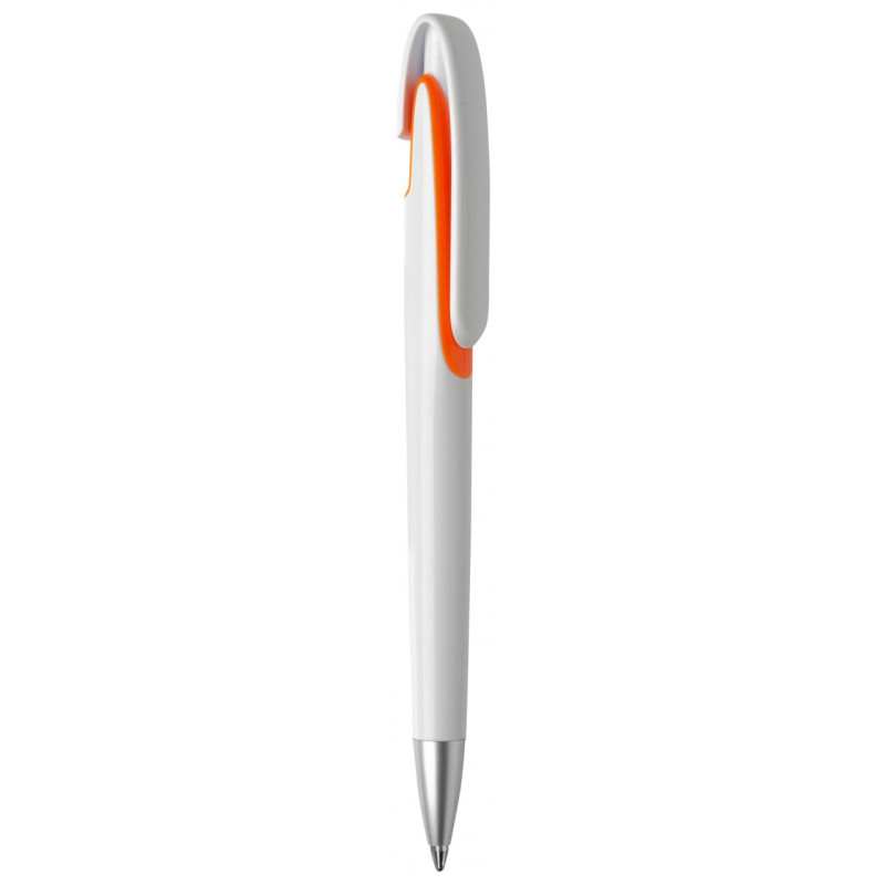 Ручка пластиковая в удобном эргономическом корпусе с возможностью нанесения логотипа на корпусе и клипе. Цвет ручки белый с цветной вставкой на корпусе.