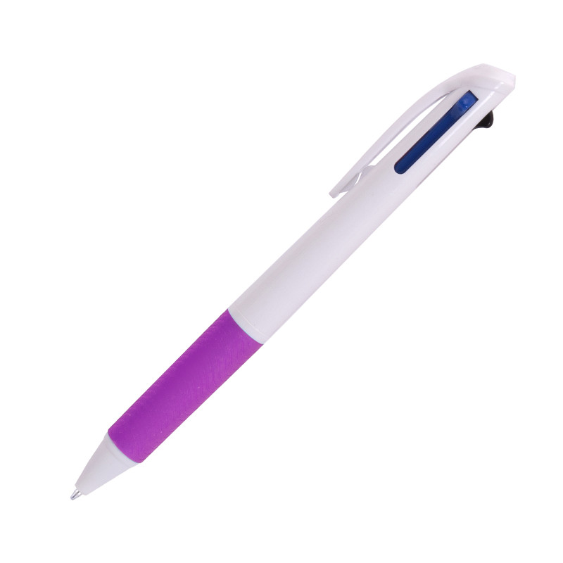 Ручка пластиковая, шариковая многофункциональная 3 в 1 Troya с белым корпусом, мягкой силиконовой резинкой для удобного держания в руке.