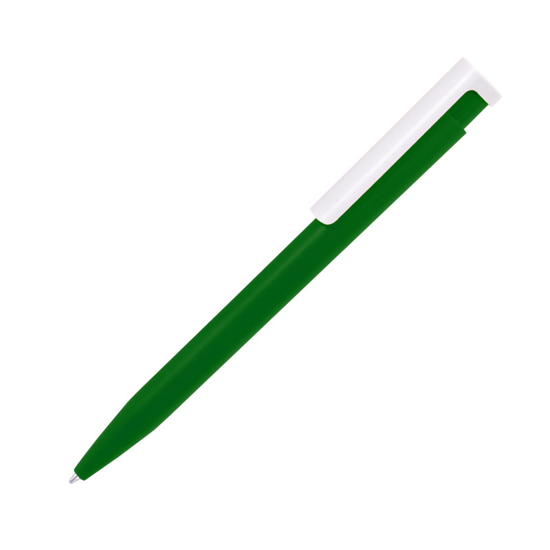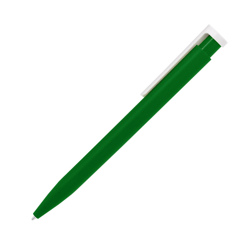 Ручка пластиковая шариковая с кнопочным механизмом и цветным корпусом. Цвет чернил: синий.
