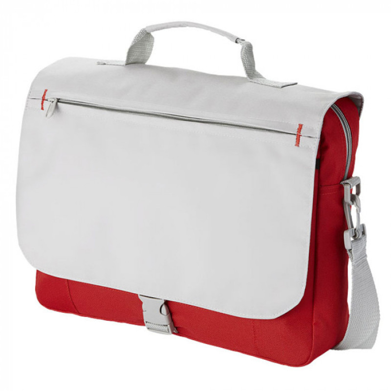 Верхнее отделение сумки светло-серого цвета (ближайший цвет по шкале Pantone - Cool Gray 2C), нижнее - цветное (ближайший цвет по шкале Pantone: темно-серый - 432 C, синий - 2935 С, темно-синий - 296 С, красный - 187 С).