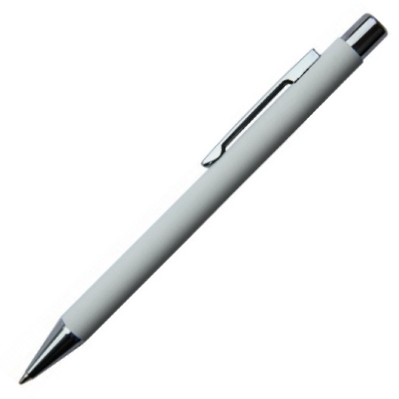 Металлическая ручка с двухслойным покрытием (хромированным и "Soft touch") и возможностью уникальной технологии зеркального гравировки. При этом буквы или изображения вырезается с помощью лазера на внешнем покрытии, благодаря чему логотип или текст становятся объемными на ощупь.