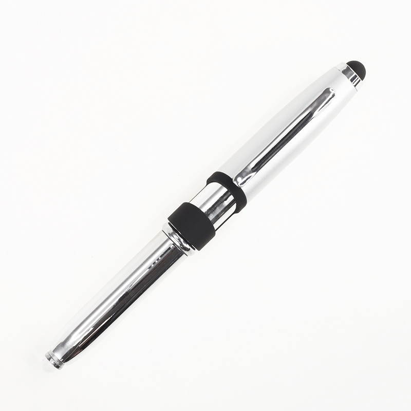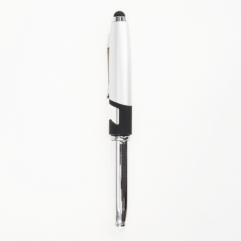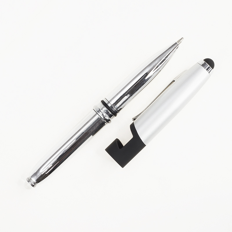 Мульти функциональная ручка - фонарик, стилуса и держателя для смартфона. Цветной металлический лакированный колпачке оборудован стилусом и держателем смартфона, ручка выполнена из пластика и покрыта хромом, на одном кончике ручке расположен яркий светодиодный фонарик, удобный для поиска мелочей в сумке, ящике или бардачке машины.
