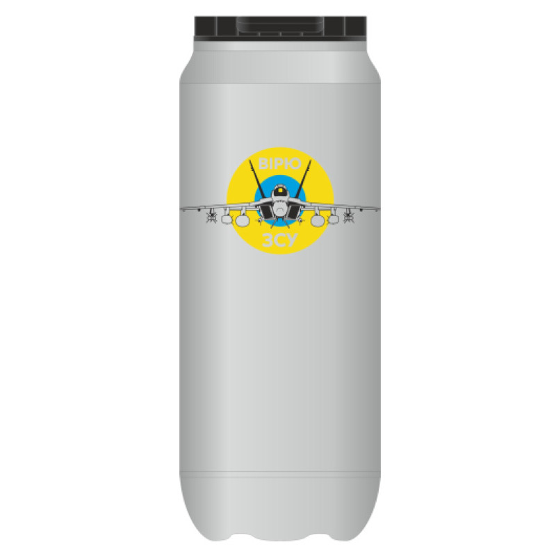 Термокружка патриотическая Авиация Верю в ВСУ, серая.