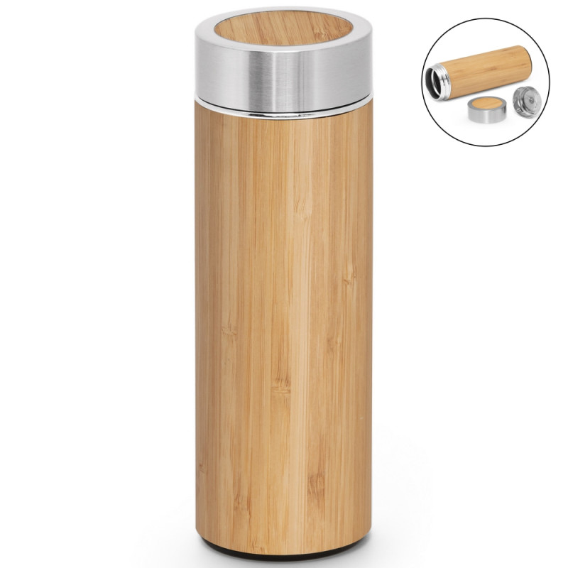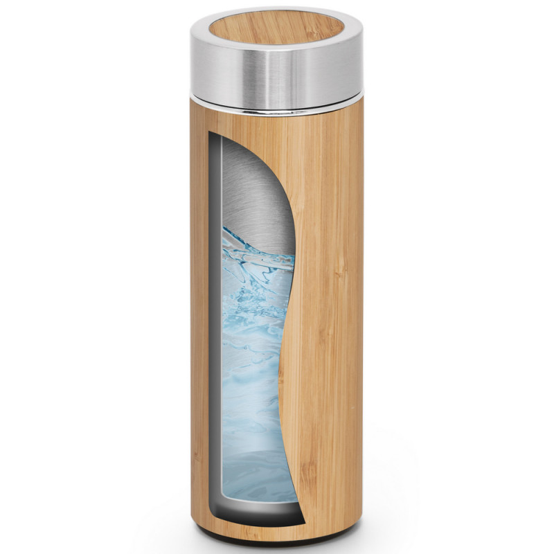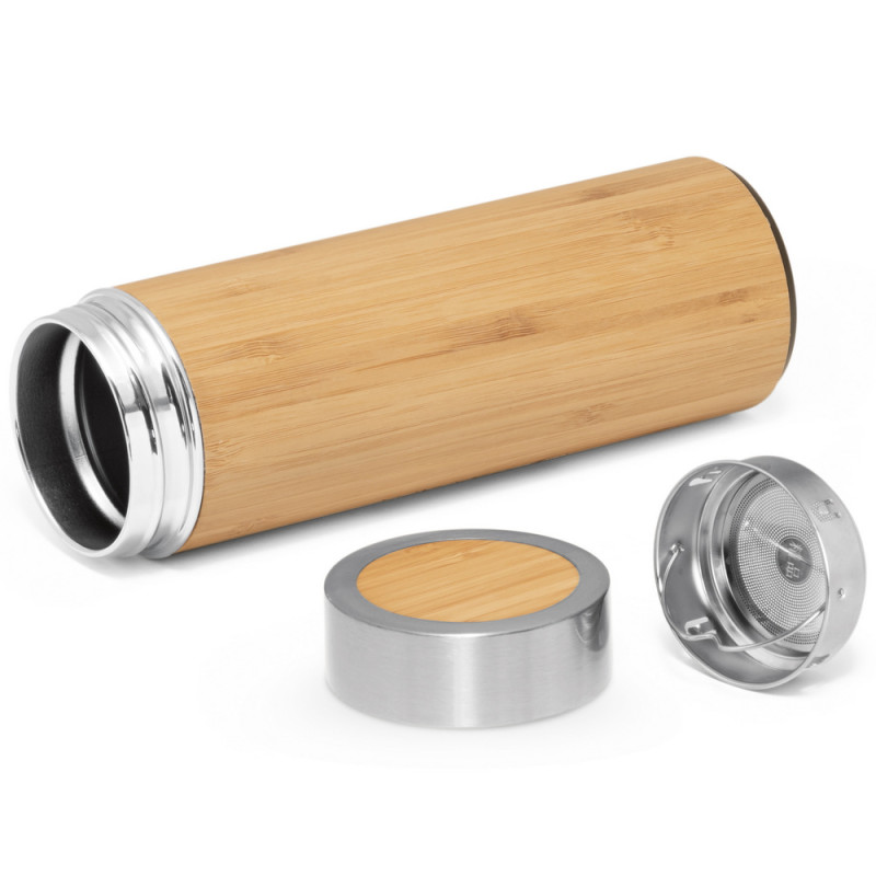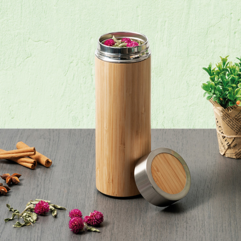 Термос из нержавеющей стали в бамбуковом корпусе.