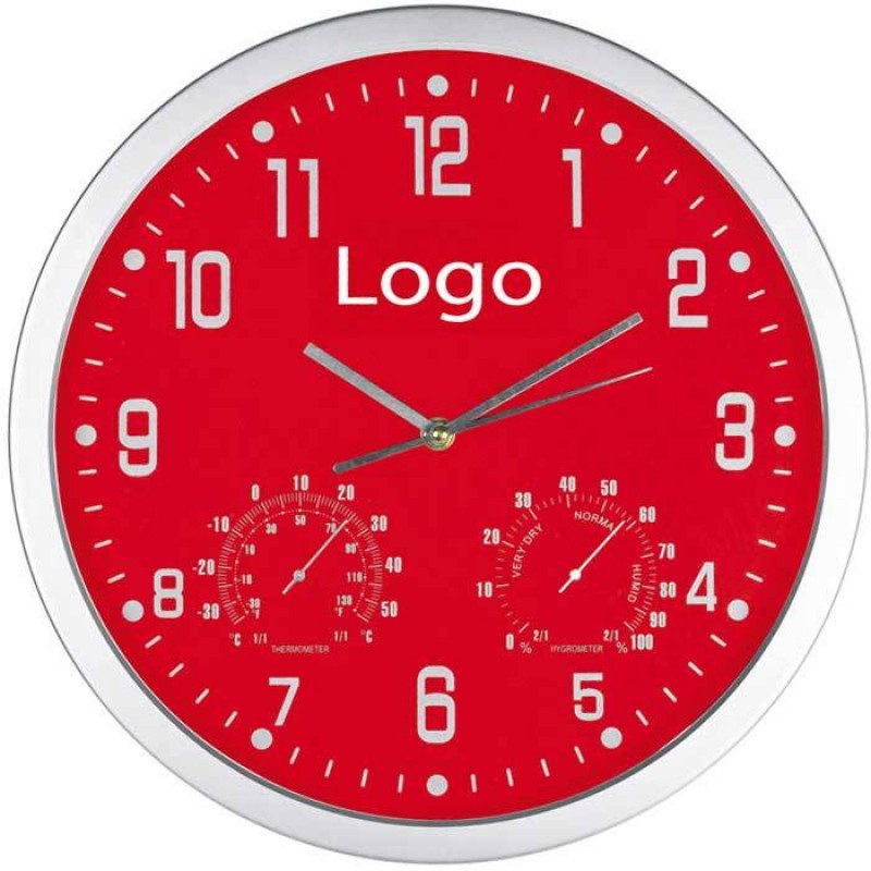 Стильные и элегантные часы с термометром и гигрометром. Рекламный логотип нанесем на циферблат часов.