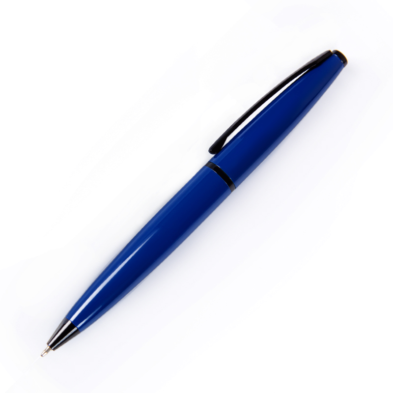 Шариковая авторучка, с металлическим корпусом, металлическим клипом и элементами. Открытие ручки методом поворота верхней части корпуса.