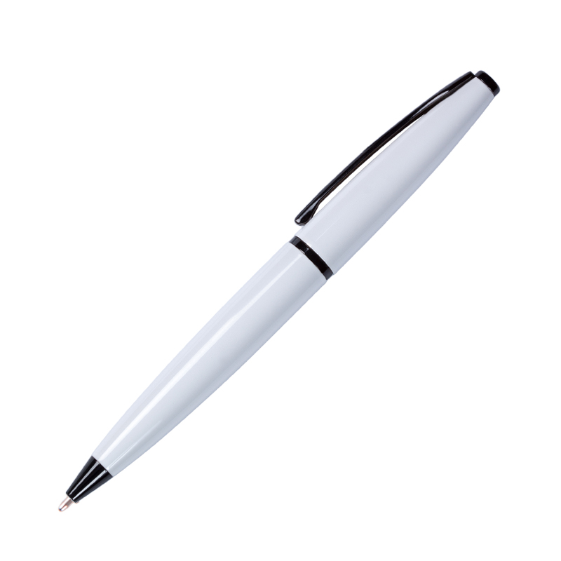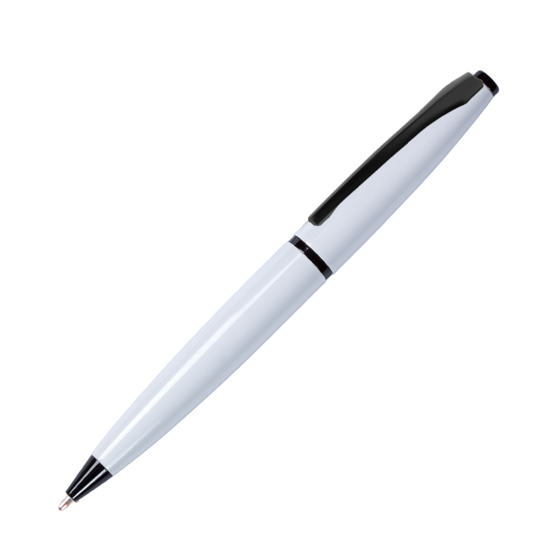 Шариковая авторучка, с металлическим корпусом, металлическим клипом и элементами. Открытие ручки методом поворота верхней части корпуса.
