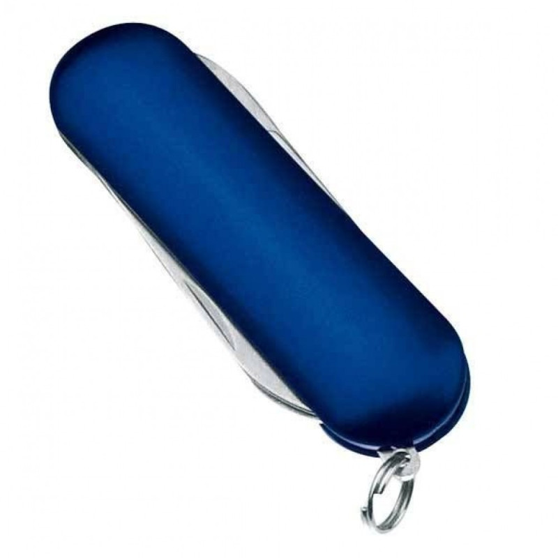 Элегантный карманный нож из нержавеющей стали с 5 функциями: нож, ножницы, пилочка / чистящее средство и брелок. Логотип можно разместить на металлическом корпусе.