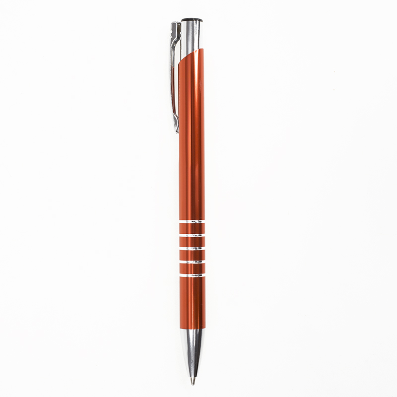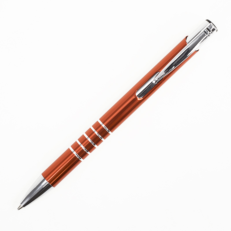 Металлическая анодированная алюминиевая ручка, кнопочный механизм, металлический хромированный клип-кнопка, 5 колец на зоне захвата, хромированный носик.