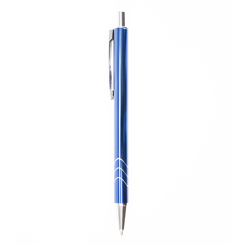 Автоматическая шариковая ручка Vive под брендирование. Грип ручки имеет три волнообразных сечения, для предотвращения соскальзывания во время письма. Хромированные клип, кнопка и носик. Глянцевое корытие, заменяемый стержень. Кнопочный механизм. Цвет чернил - синий.