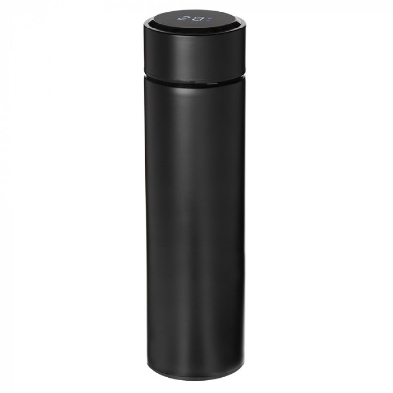 Термос объемом 450 мл из нержавеющей стали с двойной стенкой с заварочным ситечком для чая и светодиодным дисплеем на крышке, который показывает температуру содержимого. Температура отображается при касании по крышки.