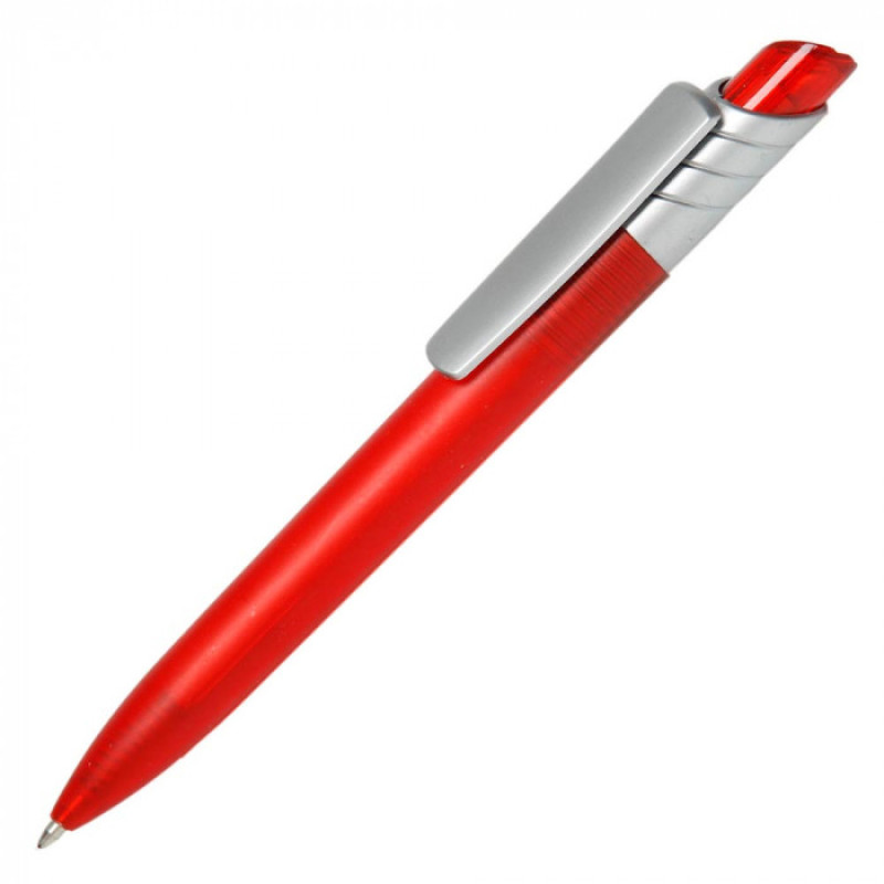Изящная шариковая ручка с широким клипом серебристого цвета. Корпус изготовлен из прозрачного матового пластика фрозен. Стержень синего цвета.