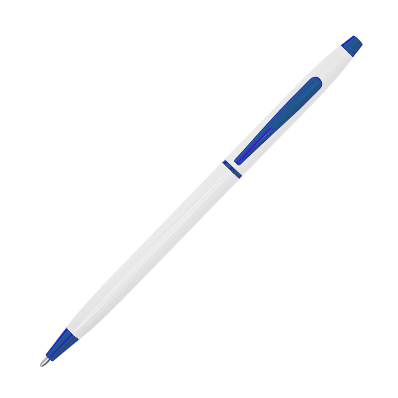 Аккуратная металлическая ручка с глянцевой белой поверхностью и цветными элементами. Цвет гравировки - серебро.