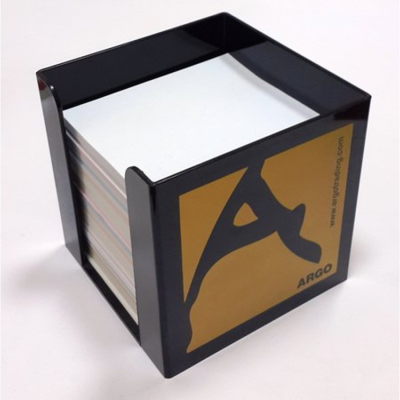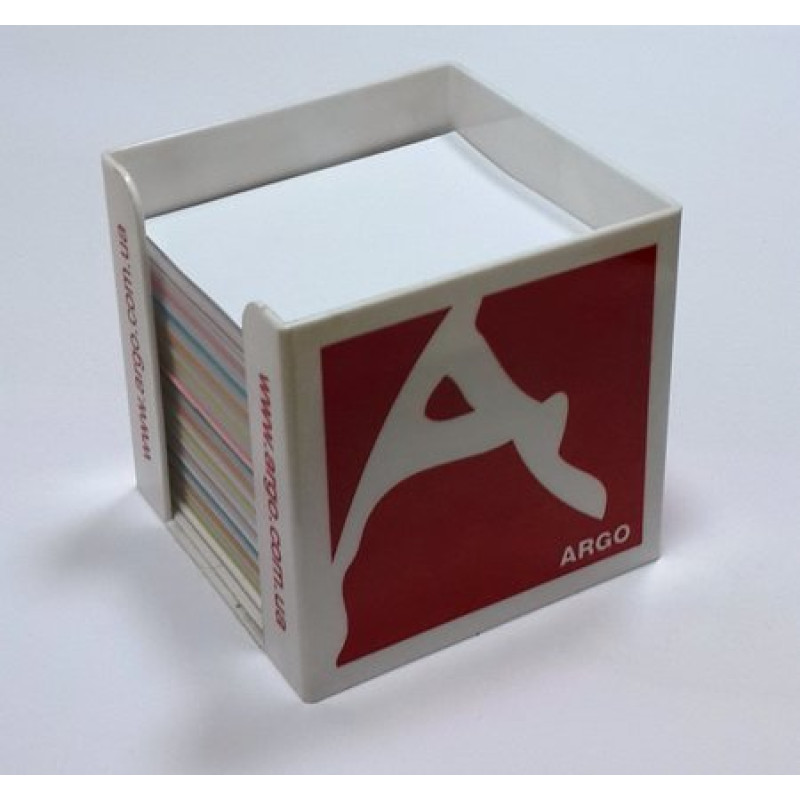 Изготовление бумажных блоков для заметок с логотипом компании. Пластиковые боксы доступны в различных цветах: белый, черный, красный, коричневый, прозрачный.
