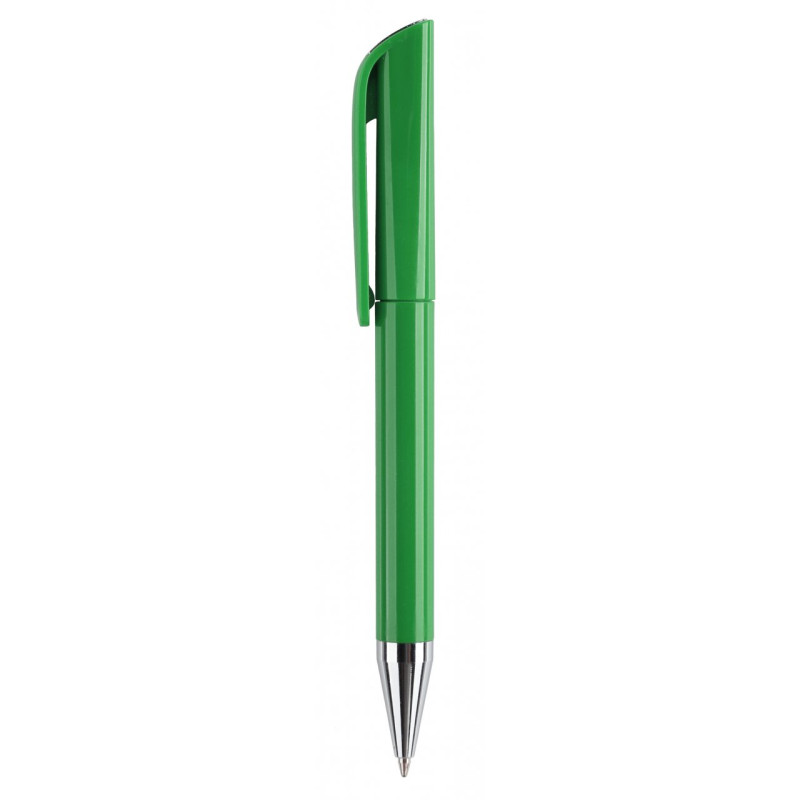 Пластикова кулькова в строгому пластиковому корпусі з металевою вставкою на кліпі, що надає ручці ділового стилю. Кліп пластиковий досить широкий для нанесення об'ємного логотипу.