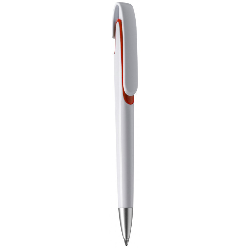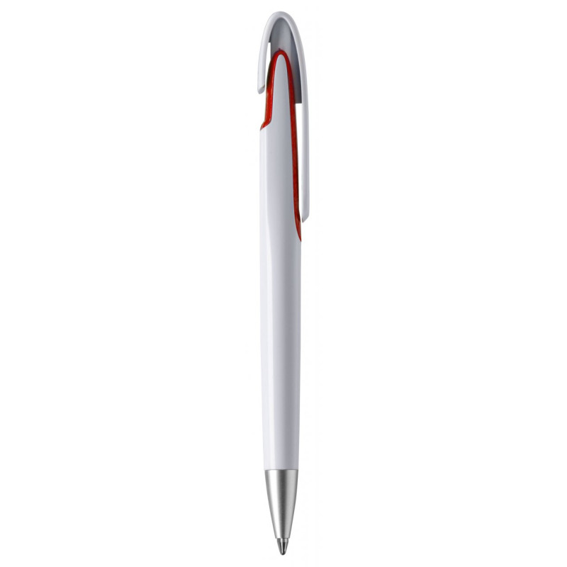 Ручка пластикова у зручному ергономічному корпусі з можливістю нанесення логотипу на корпусі та кліпі. Колір ручки білий із кольоровою вставкою на корпусі.