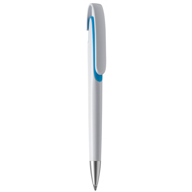 Ручка пластикова у зручному ергономічному корпусі з можливістю нанесення логотипу на корпусі та кліпі. Колір ручки білий із кольоровою вставкою на корпусі.