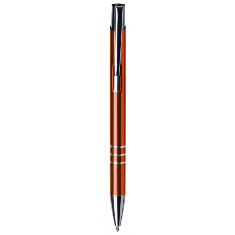 Ручка металева кольорова з лаковим покриттям. На корпусі ручки хромовані вставки у вигляді 3 кілець.
