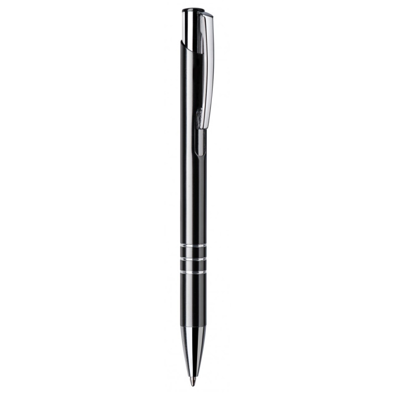 Ручка металева кольорова з лаковим покриттям. На корпусі ручки хромовані вставки у вигляді 3 кілець.