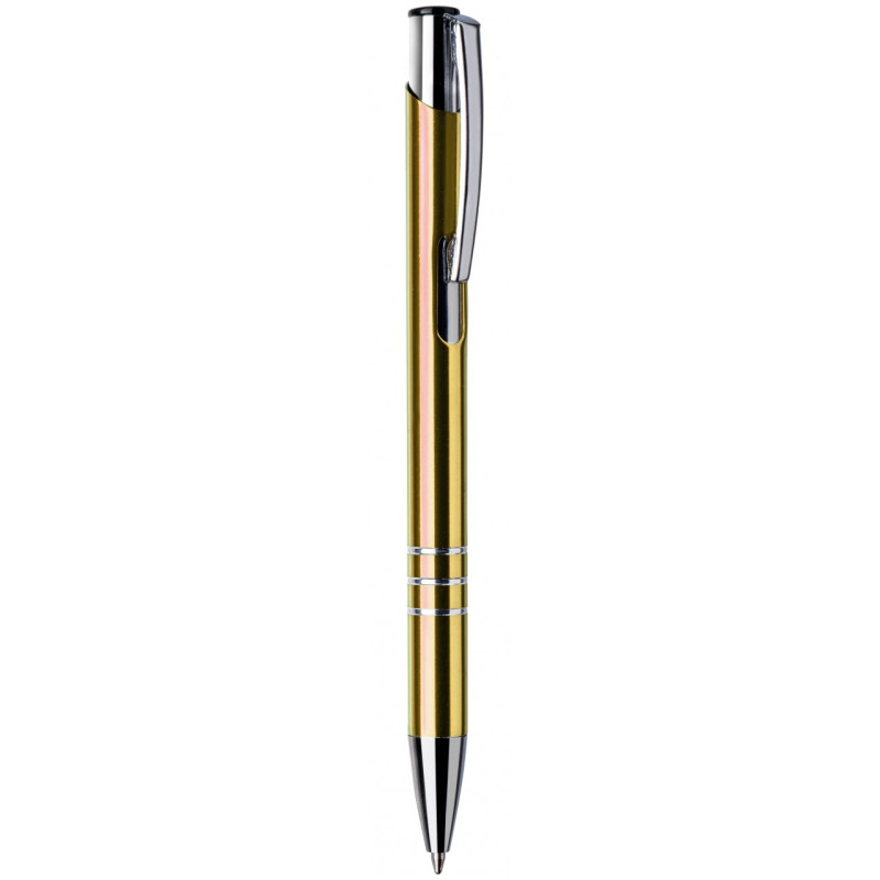 Ручка металева кольорова з лаковим покриттям. На корпусі ручки хромовані вставки у вигляді 3 кілець.
