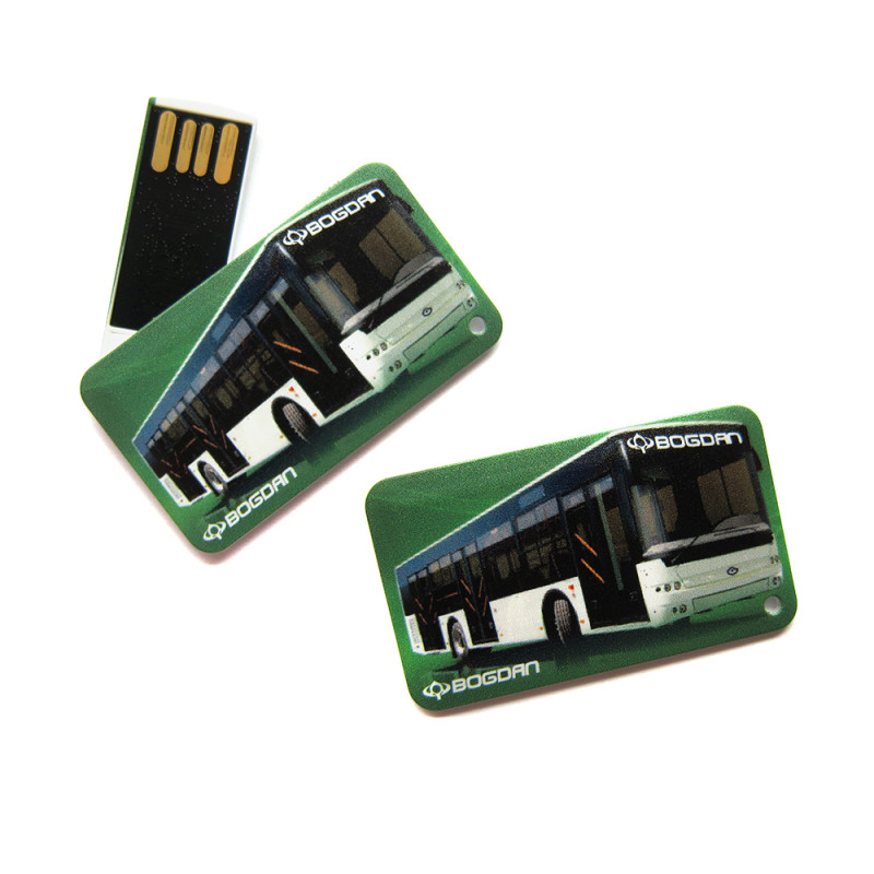 USB Флеш-накопичувач у вигляді кредитної картки з поворотним механізмом під повнокольоровий друк. Інтерфейс флешки USB 2.0.