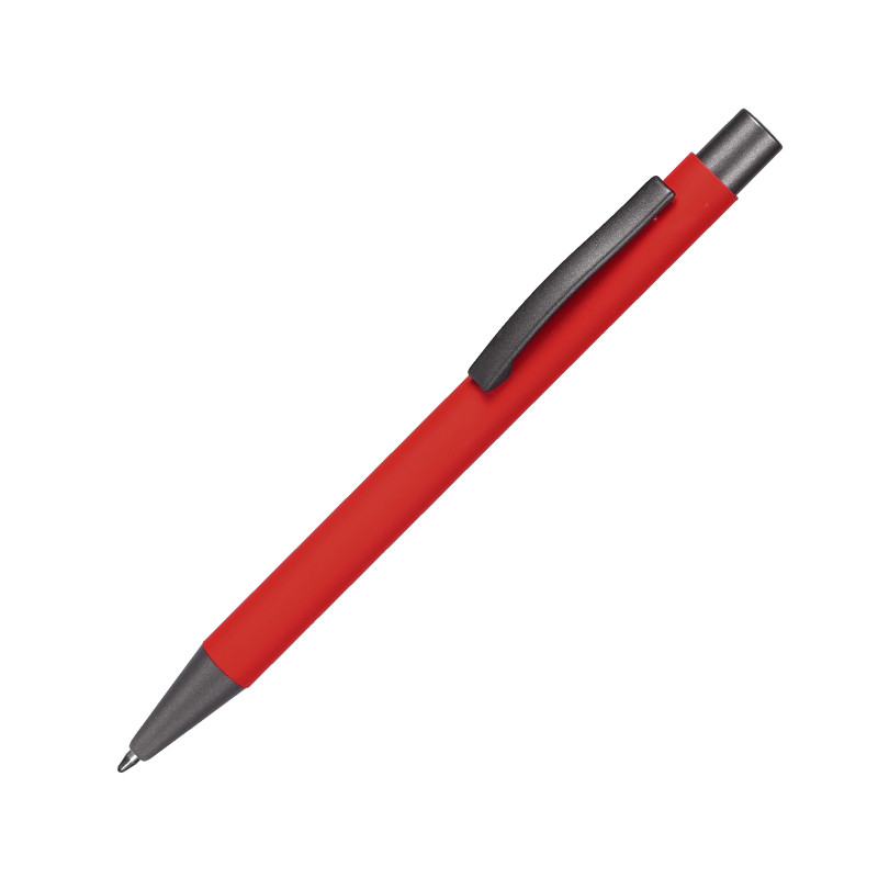 Металева промо-ручка із soft-touch покриттям під нанесення логотипу.