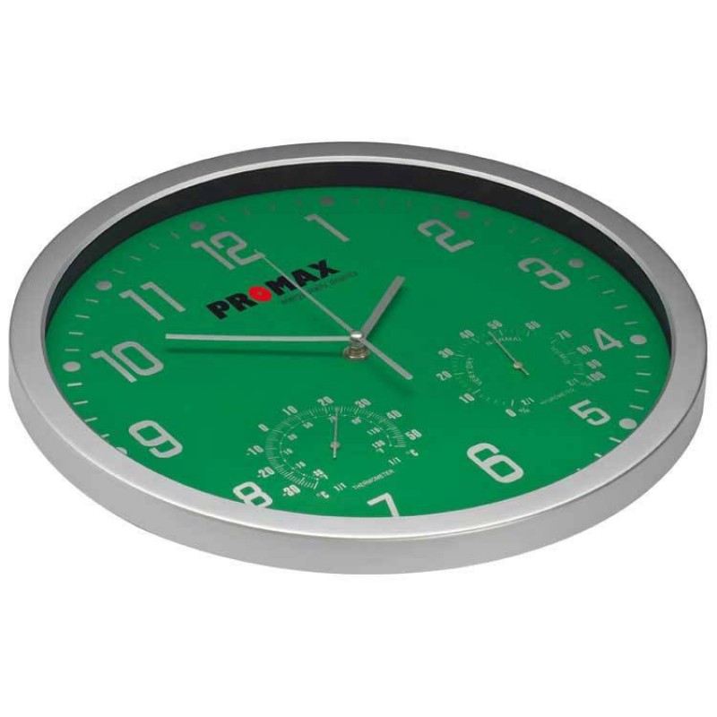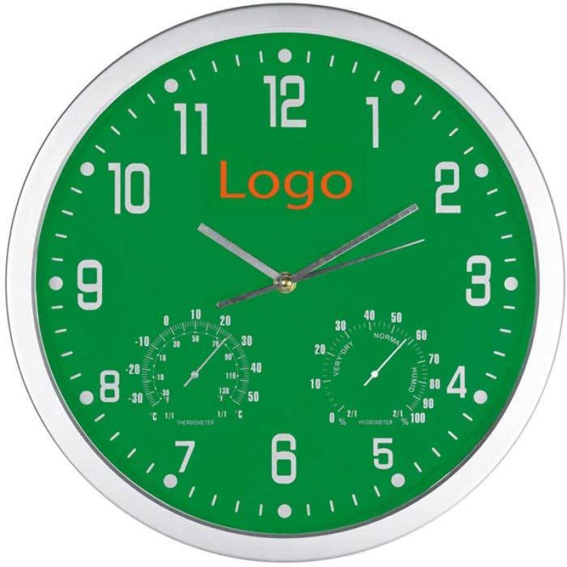 Стильний та елегантний годинник з термометром та гігрометром. Рекламний логотип нанесемо на циферблат годинника.
