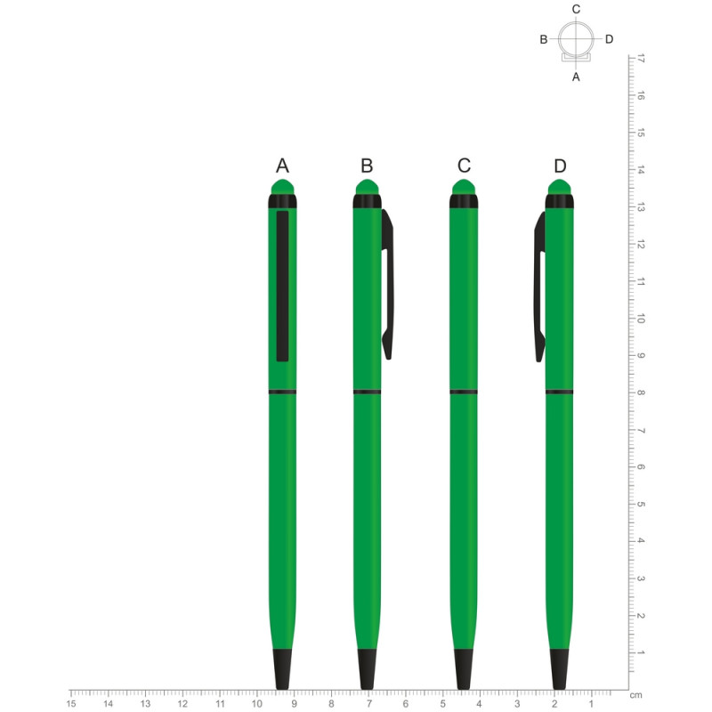 Кулькова ручка-стилус в алюмінієвому корпусі з чорними елементами під брендування.