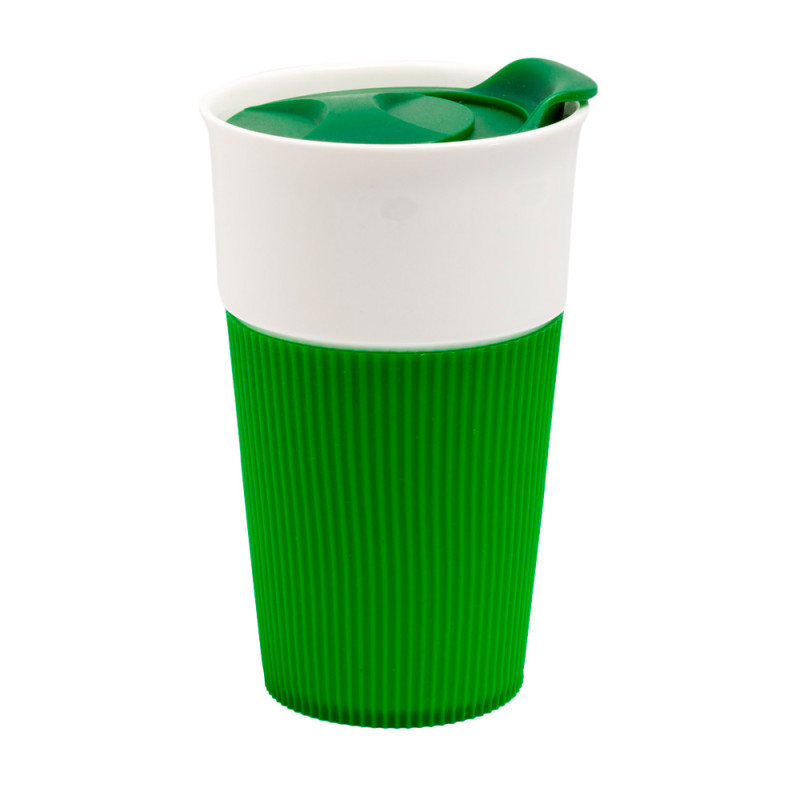 Чашка Philadelphia зроблена з кераміки, комплектується спеціальною пластиковою кришкою з клапаном і ущільнювачем, манжетою, що знімається, з м'якого термостійкого силікону, яка не дасть обпекти руки і вислизнути самій чашці з рук. Манжета по краях заходить під дно чашки, виконуючи антиковзну функцію. Місткість чашки 480 мл.