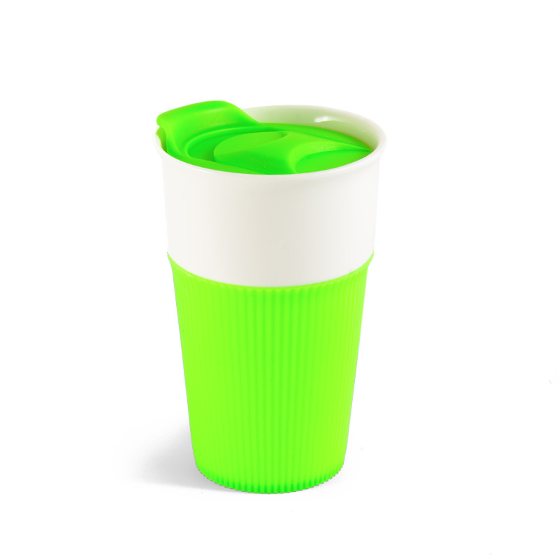Чашка Philadelphia зроблена з кераміки, комплектується спеціальною пластиковою кришкою з клапаном і ущільнювачем, манжетою, що знімається, з м'якого термостійкого силікону, яка не дасть обпекти руки і вислизнути самій чашці з рук. Манжета по краях заходить під дно чашки, виконуючи антиковзну функцію. Місткість чашки 480 мл.