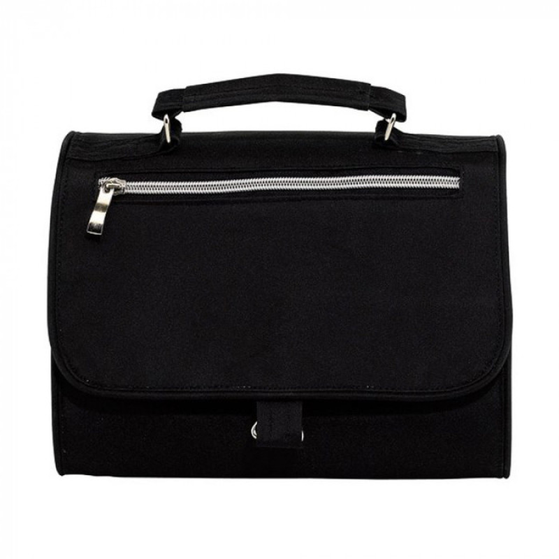 Компактна, функціональна дорожня косметичка оснащена: 5-ма кишенями на блискавці, дзеркалом, що знімається, ручкою і металевими гаками для підвішування.