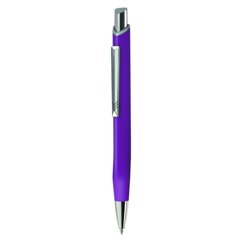 Стильна металева ручка ТМ Prestige – Kobi Lux трикутної форми. Алюмінієвий прогумований корпус, сріблястий кліп, кнопка, наконечник. Корпус із гумовим покриттям. Механізм ручки: натискний. Стрижень легко змінити. Колір чорнила: синій.